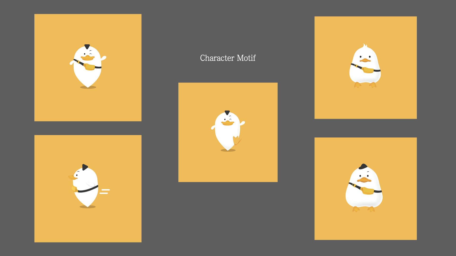 단순하면서도 친근한 오리 캐릭터는 다양한 패턴과 모티프(motif)로 변주가 가능합니다. 오리 스토어와 오리 포인트, 이후 오리 배달 서비스에서 각각 서비스 특징에 걸맞는 변형과 캐릭터 추가도 가능합니다. 나중에는 오리 가족으로 캐릭터도 확장 가능하고 주어진 미션이나 역할에 따라 오리 색깔과 동작, 옷 매무새도 다양하게 변주할 수 있도록 확장 가능성을 염두해 두었습니다.