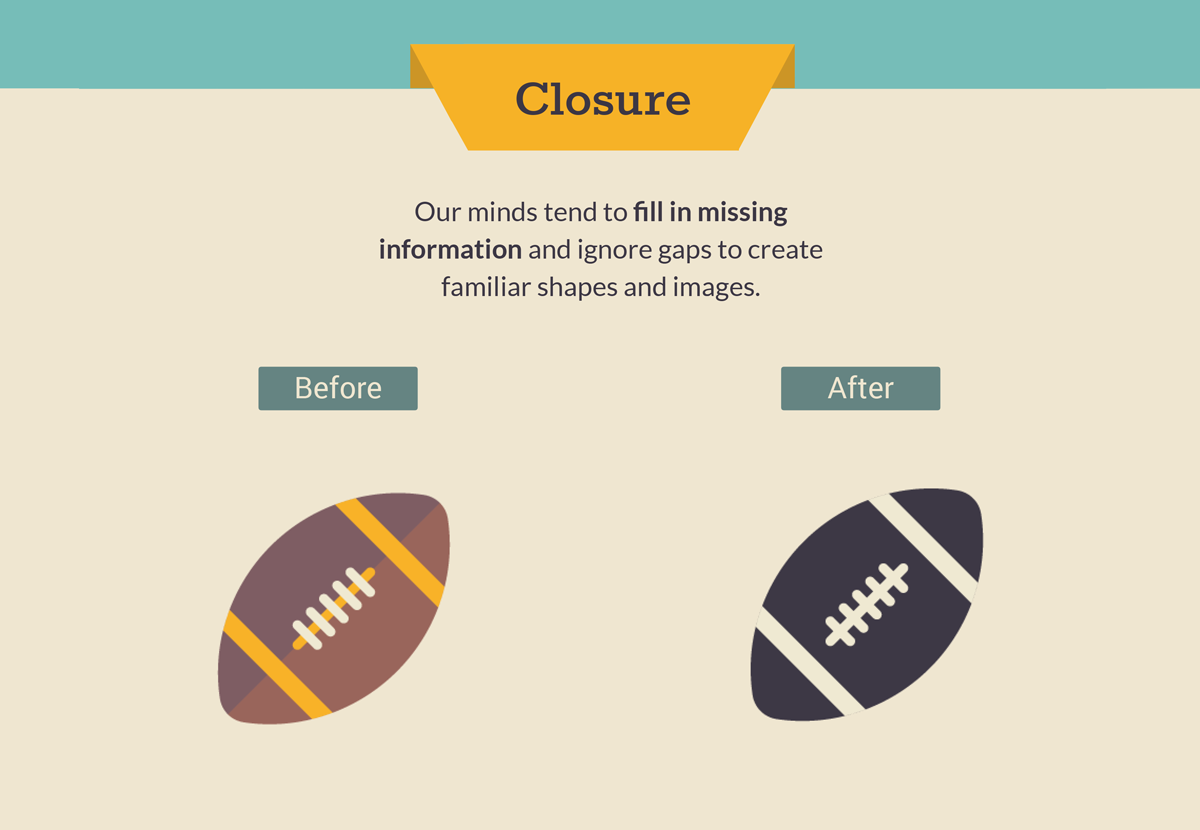 4. 폐쇄성의 원리(Gestalt Law of Closure) : 불완전한 패턴을 보고도 완전한 형태의 패턴을 연상하려는 경향