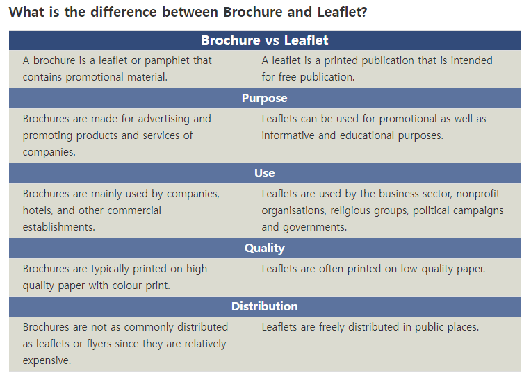 브로슈어(Brochure)와 리플릿(Leaflet)의 차이